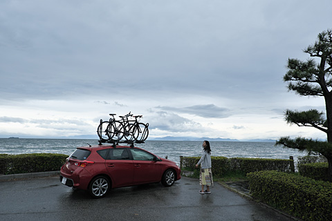 小一時間でマナの家を辞して琵琶湖畔に出てみた。西日本全体で雨が降っているのに,ボクらがいる東近江だけぽっかりと雨雲が切れ,薄日すら差してきた。