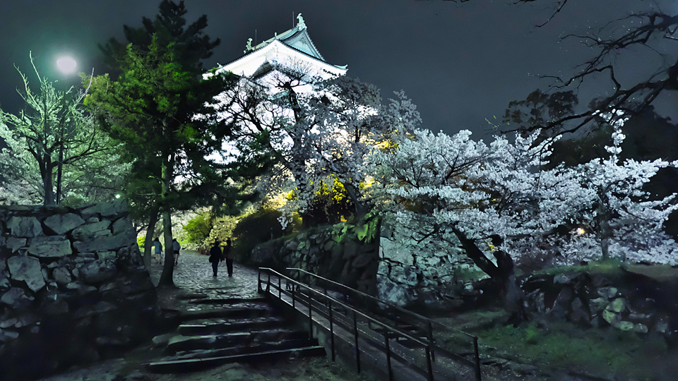 旅が一期一会を味わうものなら,今回の旅は最初の晩に和歌山で満ち足りた。通りに出ると雨が上がっていた。和歌山城跡が桜で白く光っていた。