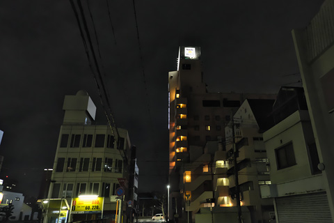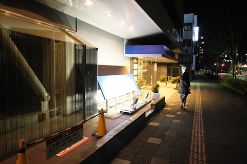 ホテルに付属の立体駐車場までは50mの距離で値段は一晩1200円。100m離れたタイムズが880円,150m先なら600円。いちばん遠くのスペースがひとつ空いたのが見えたので迷わずそこに停め,傘を差してホテルに戻る。