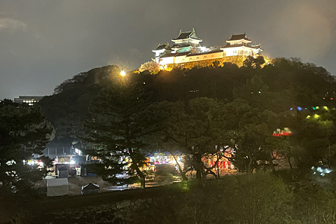 部屋は7F。カーテンを開けると正面にライトアップされた和歌山城が聳えている。