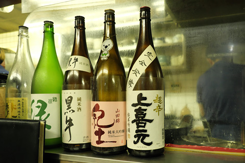 カウンターの一升瓶を探すと,本名は「紀土」と「黒牛」だと判明した。