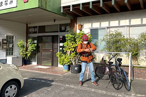 女将さんに見送られて背筋の伸びた40代のワカモノが颯爽と発ってゆく。