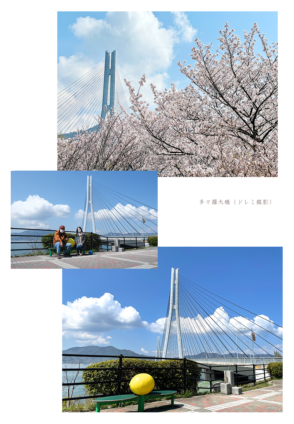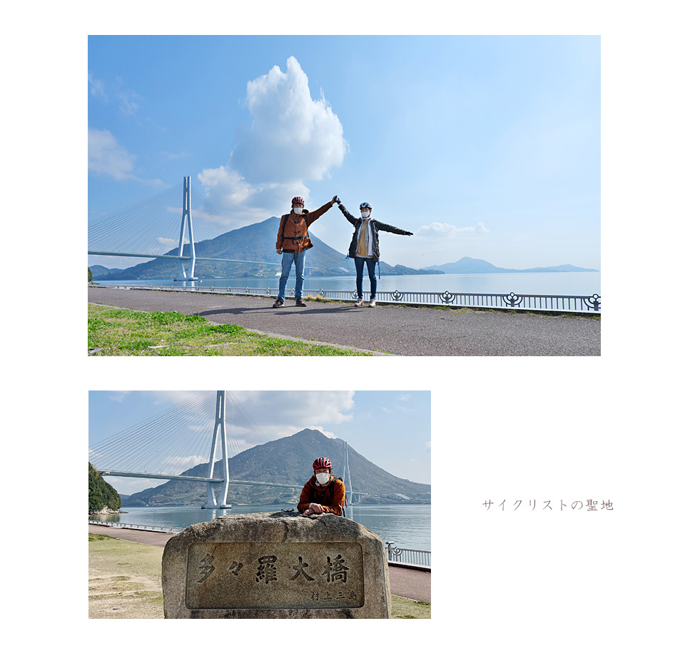 空は青く海は碧く,満開の桜が島々を薄紅に輝かせ,平地は菜の花で一面に埋もれ,丘には柑橘類の実がどこまでも成っている。せとか,伊予柑,不知火,レモン…。ボクたちが走ったしまなみ海道はきっと一年で一番美しい二日間だったろう。