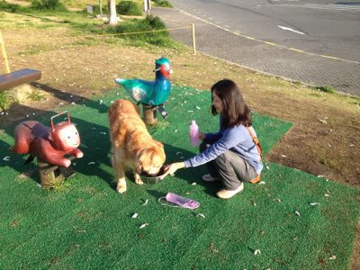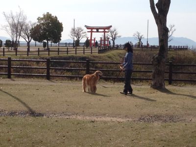 タローが車に乗りたがらない.もう東京を出てから9時間ひたすら走ってるもんね.人間でも退屈するよ.仕方ない,ちょっと散歩ね.