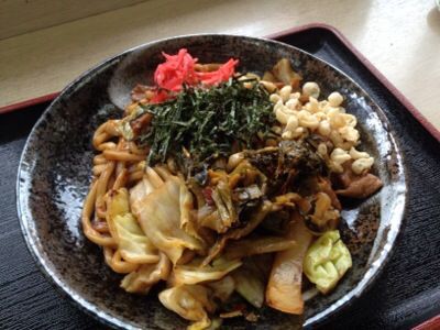 お昼はとんこつラーメンと小倉焼きそば.普通の焼きそばだけど;^_^A