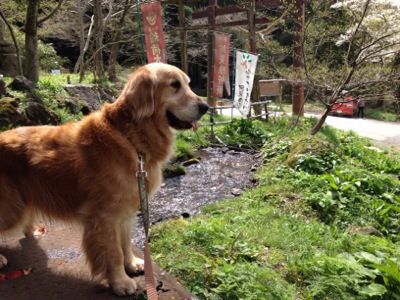 夕べの風呂上がり,ドレミが荷物整理してる間にタロー散歩してたら,こんな露天風呂があるのを見つけた.どうやらかなりの由緒があるらしい.