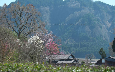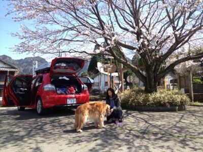 駐車待ちの車があふれていている阿蘇神社をパスし,小さな村にさしかかったところで,桜の古木がしなるほどたくさんの花をつけているのが目に入った.