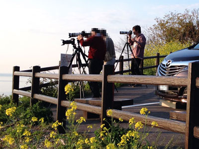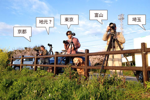 三脚を並べて日没を待つ人たちも,みな遠方からの好事家ばかり.富山から来た隣の方など,4泊5日逗留して毎夕通うそうで,この日2日目だとか.