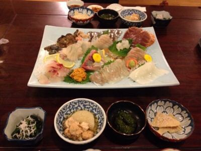 唯一,出発前に決まってた行き先(笑)山陽道を走行中に予約した.ドレミがとっても楽しみにしてた.生魚がそれほど好きでないボクにはブタに真珠だけど(笑)