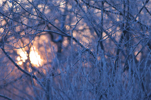 川が神秘的な光に包まれた時間は10分ほどだった.撤収を始めたときには,もう指が開かなくなり,三脚に抱きつくようにして車に運んだ.頭皮が妙に突っ張ると思ったら,髪の毛が逆立って樹氷になっていた.