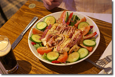 15分ほど歩いてグーグルマップで営業中となっていた最寄りのパブにたどり着くと「今日は火曜なので…」休みだという。確かに客は一人もいない。そんなこともあるのだと知った。通りはすでにシャッターを下ろした店も多く次の飲食店は1ブロック先だ。むつみ母が疲れている。旅も二日目,いちばん疲れの出る頃だ。ボクの腰も少々ヤバい。冷たい雨が降り出した。