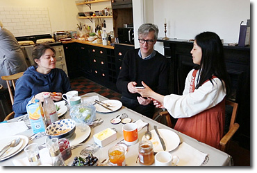 最後の朝ごはんはやっぱり白インゲンの煮豆かな。…ボクはパンにクロテッドクリームだけど。