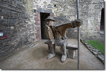 世界遺産の城にしては良心的な設定になっているが,城門を入ると木彫りの兵士が出迎える。…ぎりぎりである。チャッツワースハウスの馬よりはマシだが日本人の理解の範囲は超越している。