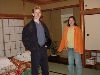 二人には日本気分を満喫してもらおうと,ベッドではなく,座敷に布団を用意しておきました.