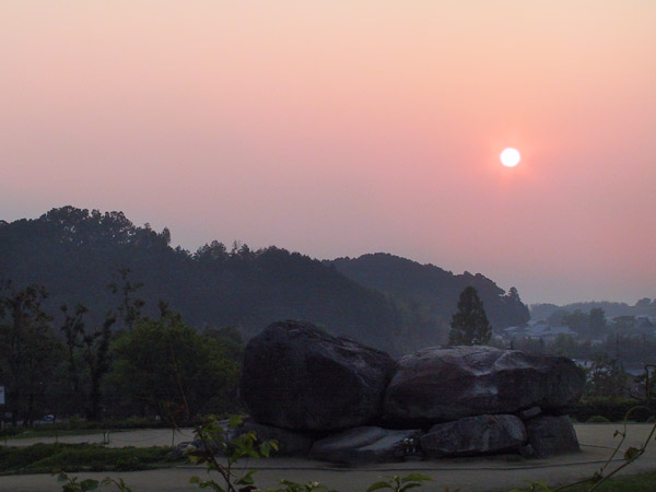 時間が遅かったので,もう中には入れませんでした.古墳を見下ろせる丘に登って,草に越し掛け,夕日が沈むまで古代の話をしました.