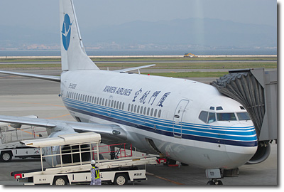 実は夏休みのこの時期,成田発着のJALでアモイに飛ぶと結構費用がかかる。いろいろと調べているうちに関空からは厦門航空(XIAMEN AIRLINE)という聞いたこともない航空会社の直行便があり15000円も安い。今回6人の団体なので9万円,大阪までの高速代とガソリン代をさしひいても一人一万円はお得になる計算だ。