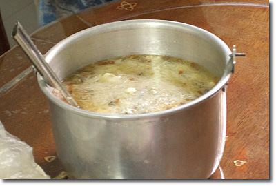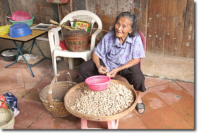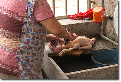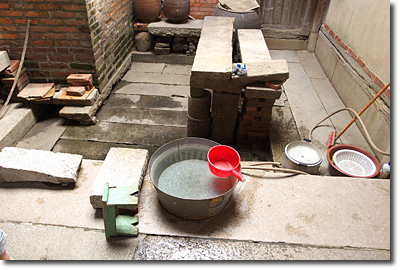 しかも,朝早くから料理自慢の洪母によって,ビッグランチの準備が進行している気配がある。さっきまで玄関脇の小屋で愛嬌を振りまいていた鶏が一羽,首を失って洪母に毛をむしられている。鶏をつぶすのは最大級の歓迎を表す。今日は胃腸の正念場となりそうだ。