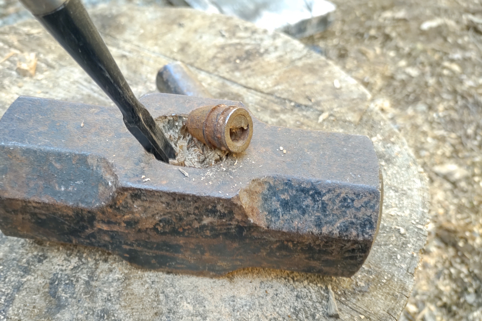 ドリルでメッチャ刺しにしてくさびの周りを緩める。