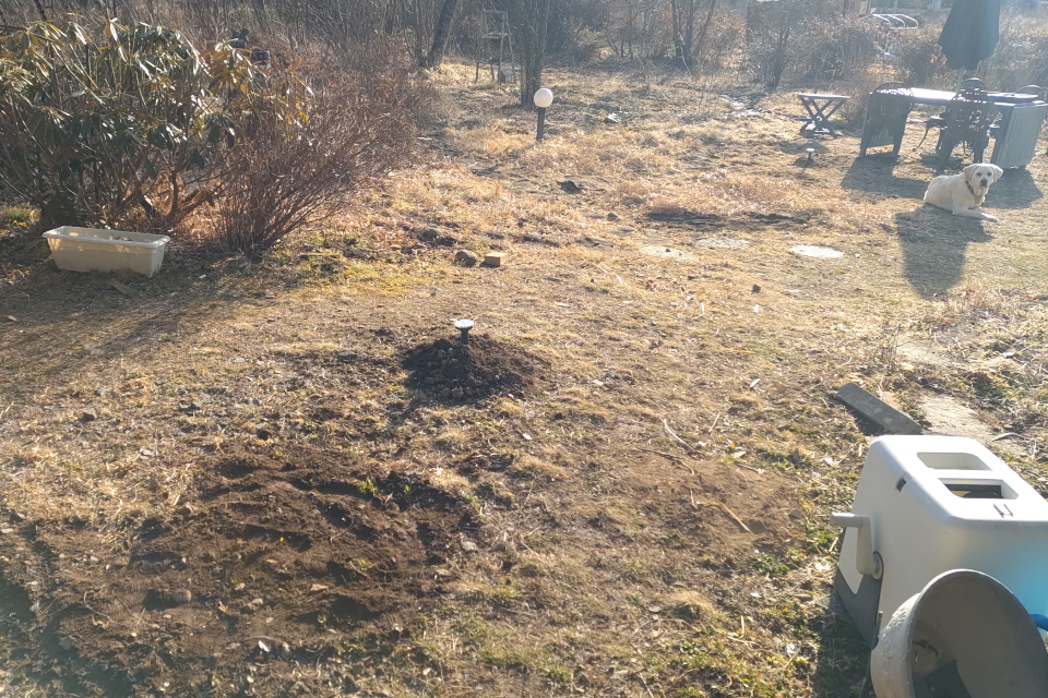 音波発生装置を差していないモグラ塚をなおみが全部ならした。