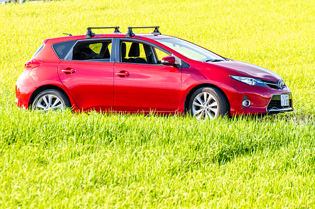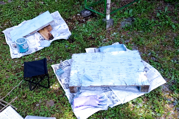 先週、ペイントした木をルーフキャリアの台にした。