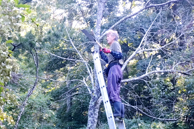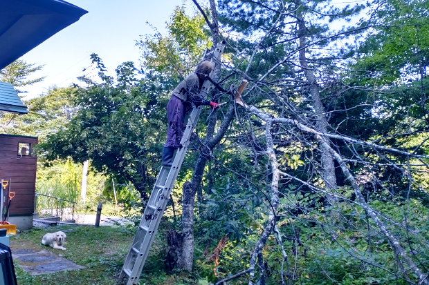 倒す方向にある松の木にひっかりそうな枝を落とす。なおみが自分が登ると言って譲らなかった。ボクのバランス感覚の衰えを心配してのことだが、もともとなおみは運動神経がかなり悪い。