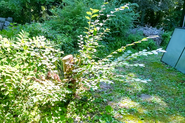 ウワミズザクラが枯れた。かろうじて枝一本だけ花をつけたが全体的には枯木でもう幹にクラックも入っている。