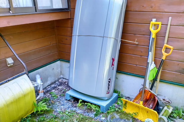 風呂場の屋根にかかっているので倒れると危険だ。