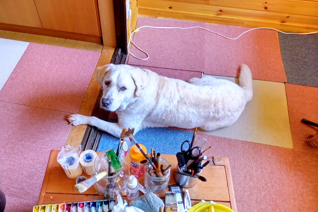 暑いのでドライヤーも途中で中止となり、アトリエのエアコンをつけて乾かした。