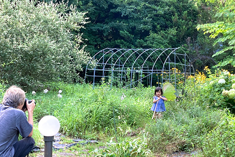 幼児にとってしらべ荘の庭は格好の遊び場である。ちゃらT一家もほぼ庭で過ごしていた。ボクもお客さんをあまり構うことをやめることにしている。