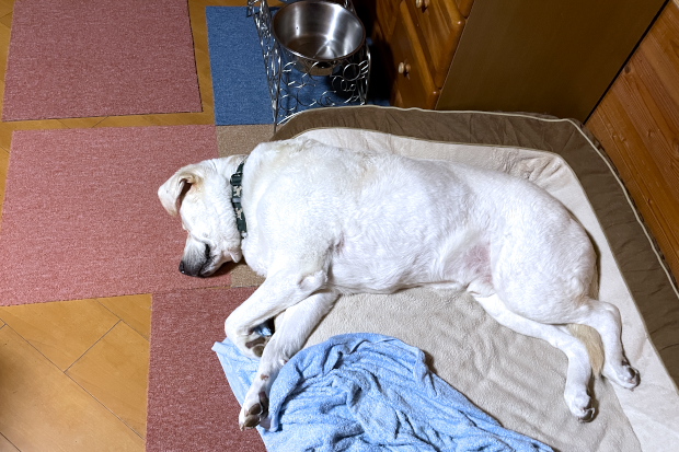 ハウスでもこの通り。疲れたんだろうな。