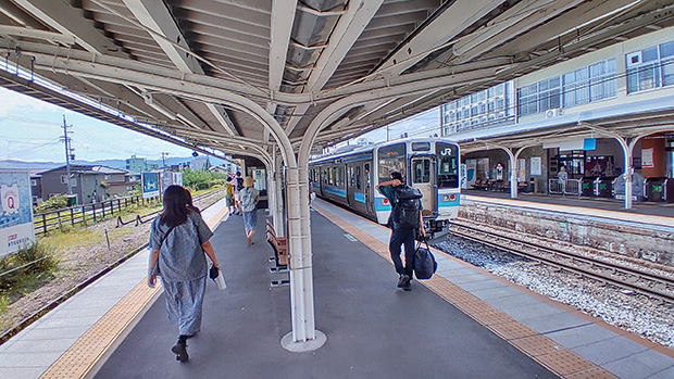 構内からみると駅の風景も何だか旅先ムードがある。