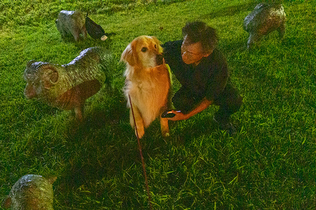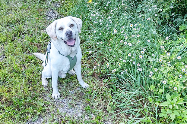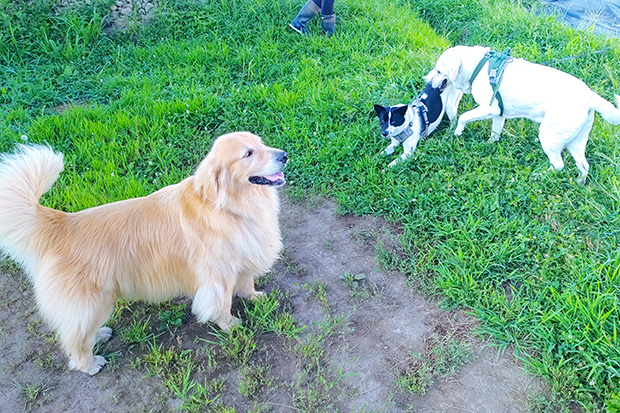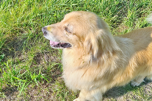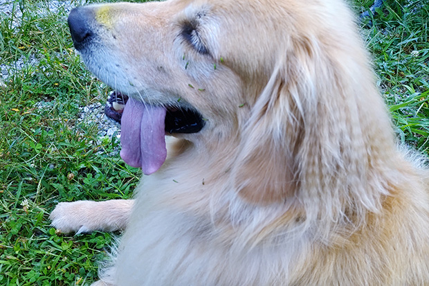 鼻の頭はその後に菊芋の花に顔を突っ込んで花粉を浴びたもの。