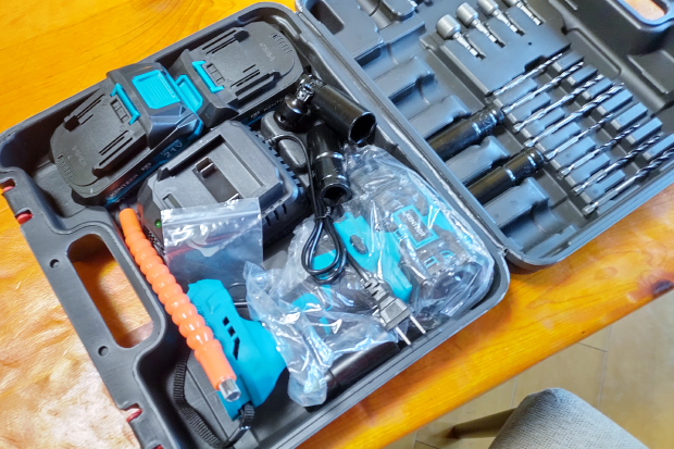 じゃーん。届いたのは10日くらい前だけどなかなか梱包が解けなかった。マキタのインパクトはどうしても重すぎるので、ばぶるさんのアドバイスでバッテリー互換のものを買った。