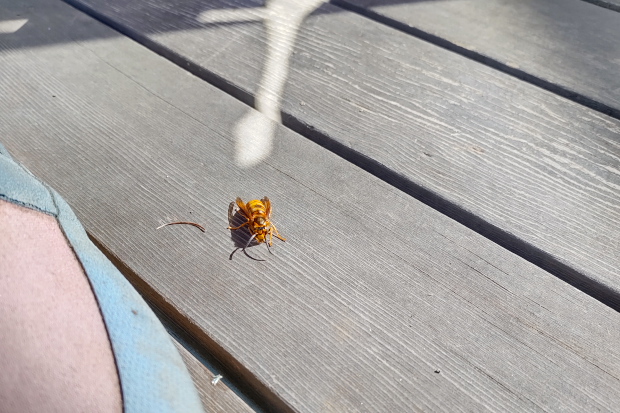 このバッタ、昨日甲府で迷い込んだものか。