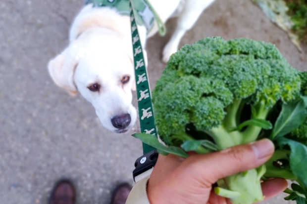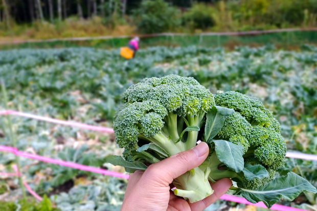 花農家のおばさんがブロッコリーを2つくれた。悪いと言っても出荷基準に外れているだけで、ボクには全く見分けがつかない。