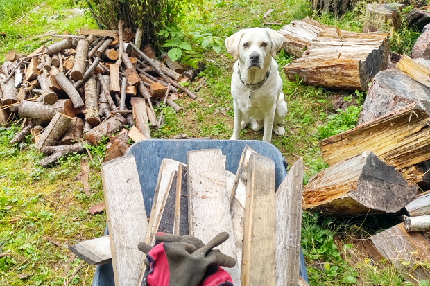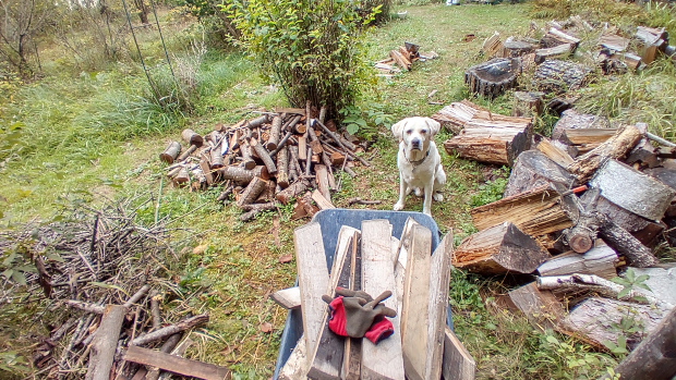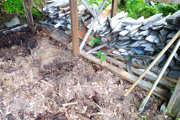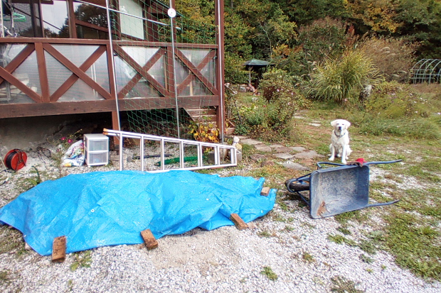 薪小屋にキシラデコールする前に今積んである薪を運び出さなければならない。どうせならベランダの下に運ぼう。
