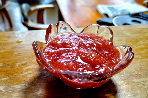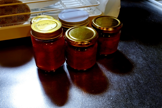 帰宅するとなおみがいちごジャムを煮終わっていた。
