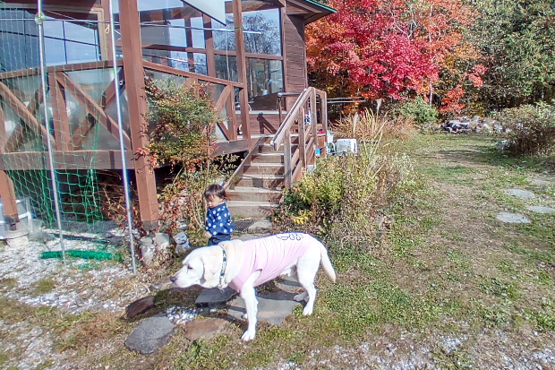 さて上社本宮に行ったらしい一家、早々に帰って来て庭に繰り出した。