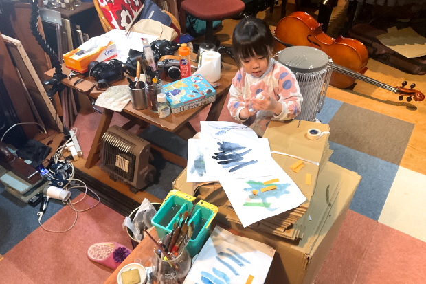 ところがハイテンションの二人はチェロを弾きたいと言うお父さんについてアトリエに入りあばれはじめた。あわててストーブを消した。…これがむしろ仇となった。消火して放射熱を失ったストーブは子どもに危険を報せない。ゆいちゃんが鉄部を触って火傷した。手のひらだったし、温度は下がっていたので大ごとにはならなかったが、火ぶくれになってとても痛い思いをさせた。後悔先に立たず。幼児がいるときはストーブはつけないことだ。