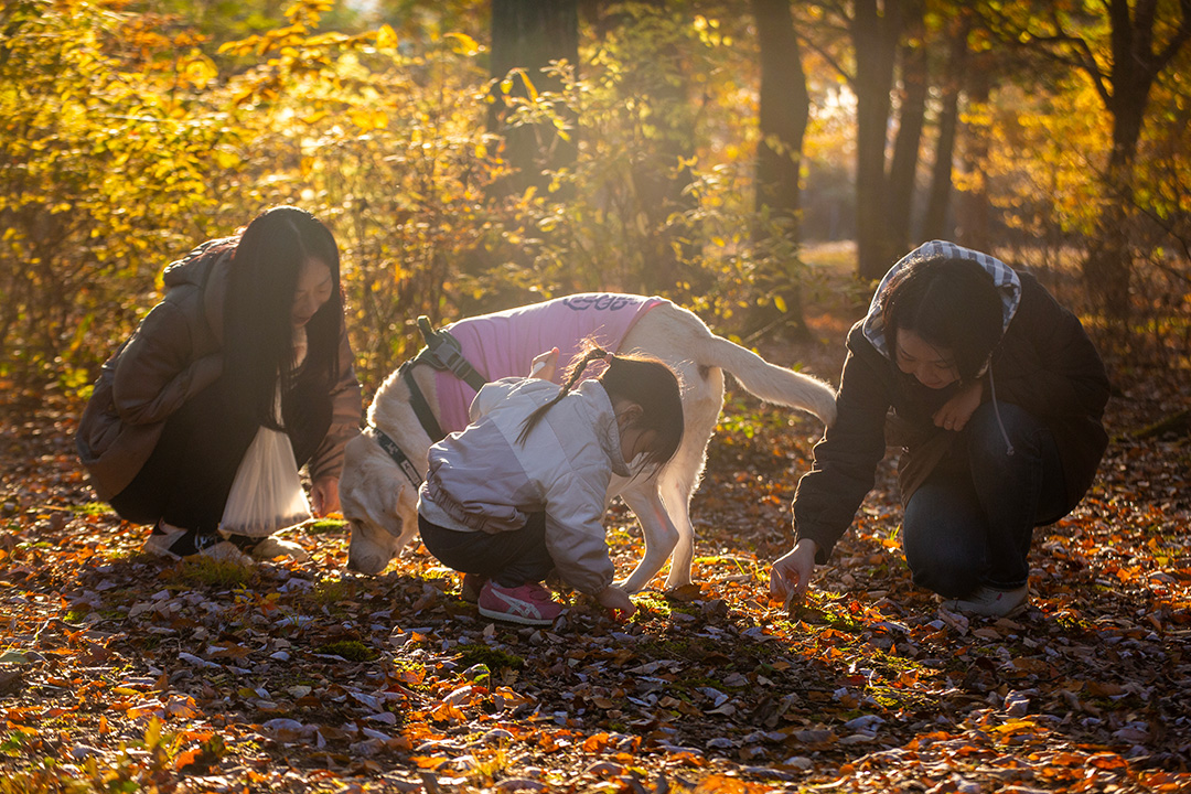 けいちゃんが「どんぐり拾い」に興味を示したので、夕方阿久遺跡に下りた。ちょうど前日にロリ散してシイやブナの木が多いことを知っていた。
