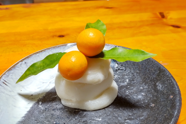年末にもらった丸餅を20秒チンして丸めなおし、上京したときに義母がもたせてくれた金冠を載せたらちょっとした鏡餅ができた