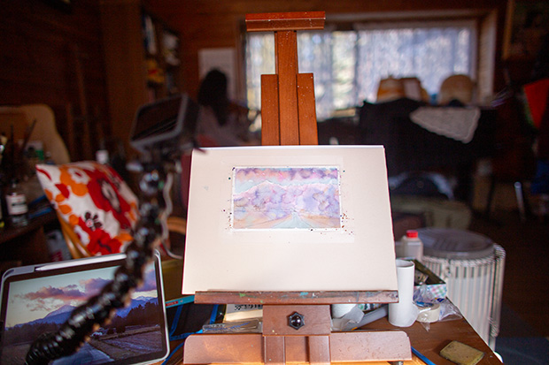 一年の計は元旦にありとて、バイオリンの練習の横で小さな水彩を描いた。