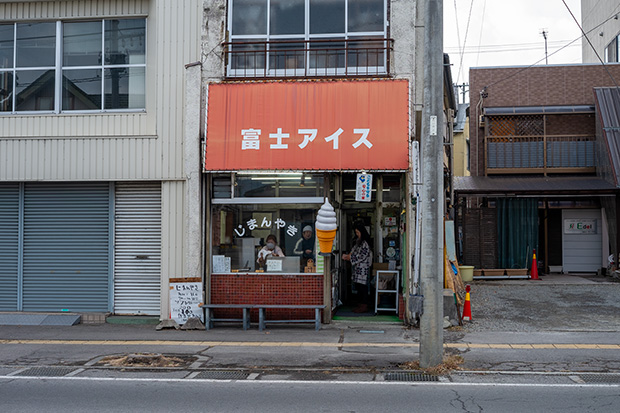 九酒造巡りのエッセイに使おうと思って富士アイスを激写していたら、なおみがおやじさんにあんまりきたない店を撮るなと言われたそうだ。