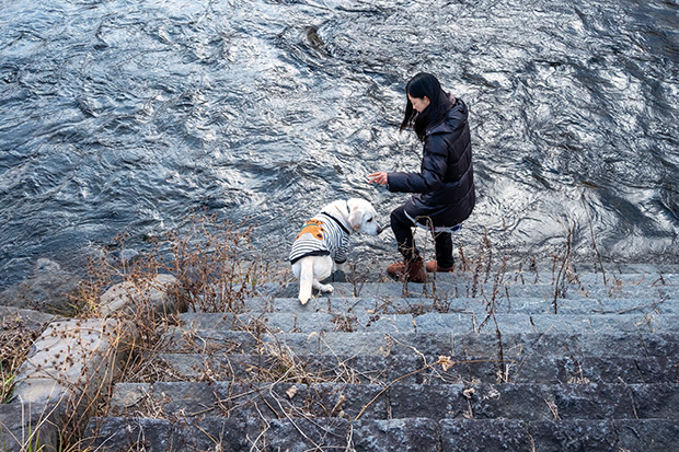 基本的にローリィはリスクのある道はいったん進むのを拒否する。それでも促すと最も危険が少ないコースを探して歩く。ガイドドッグのプロだった証だ。