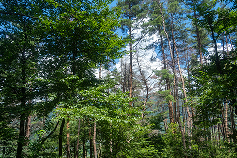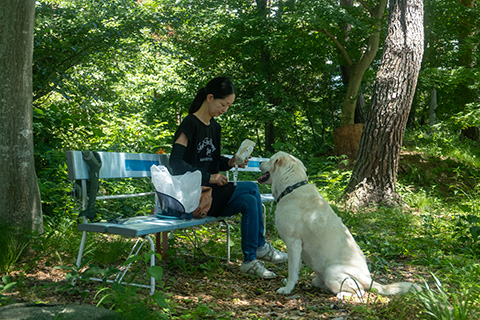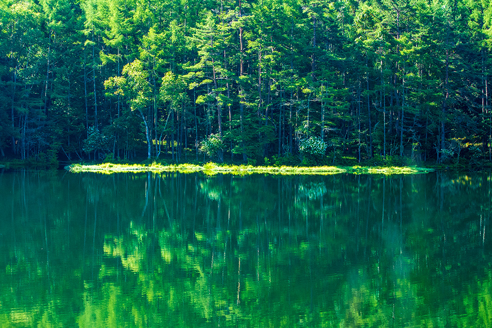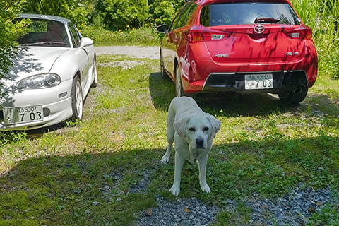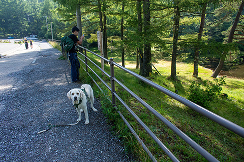 朝、御射鹿池やまるやち湖を案内した。どこに連れて行ってももの喜びする。なんだか自分の若い頃に似ている気がする。
