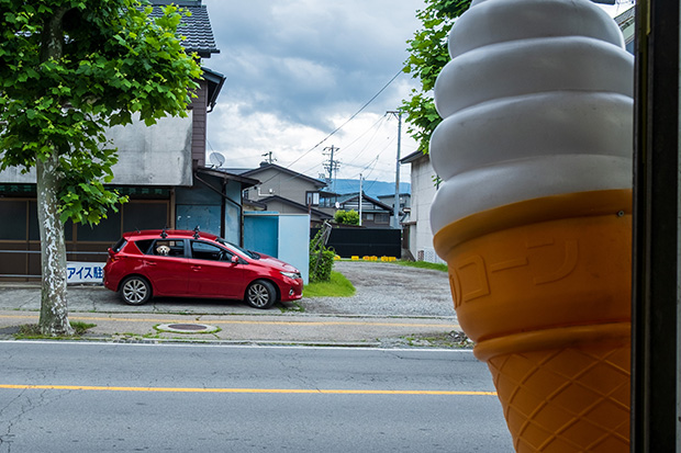 富士アイスで自慢焼を8個買った。駐車場で顔を出したローリィをみてお店のおばさんが