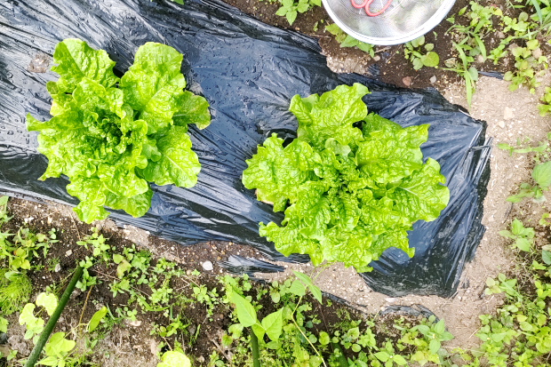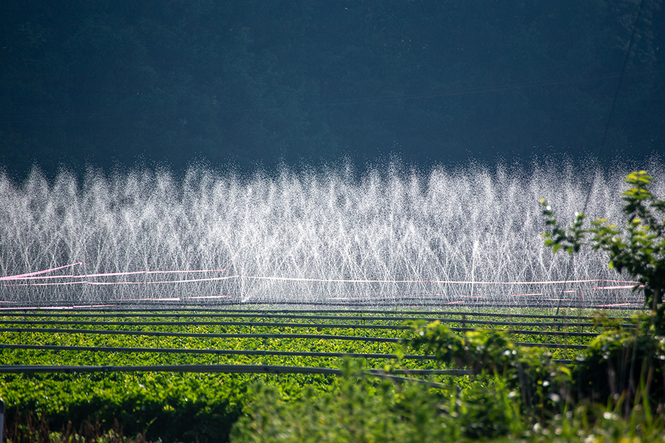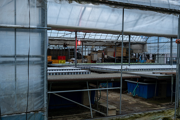上里神社の隣のハウスに赤外線の灯がつるされていた。何の苗だろう。