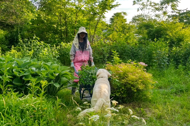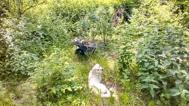 ブルーベリーの剪定の続きとヤマブキの整理。今日から真夏の気候だとか。さすがのしらべ荘も炎天下での外作業は30分ちょっとが限界