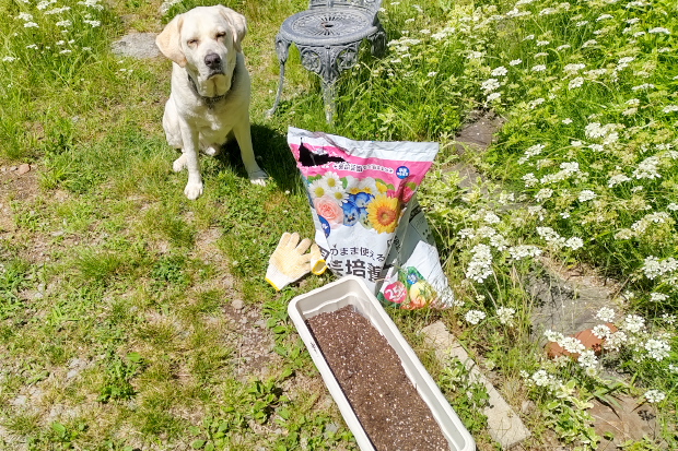 インターネットで買ったタイマツソウのタネをプランターに蒔いた。