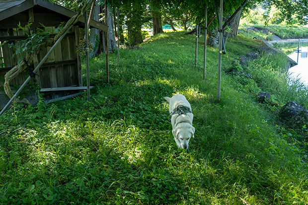 お腹の調子はまだ悪いが今日は晴れて暑くなるという予報なので、どうしてもローリィは朝歩かせてやらないと。